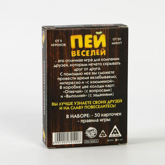 Купить игра для компании "пей веселей" 50 карт от 180 руб. с доставкой до пункта выдачи в Бугульме. Интернет магазин ДекаМаркет. Оплата при получении.