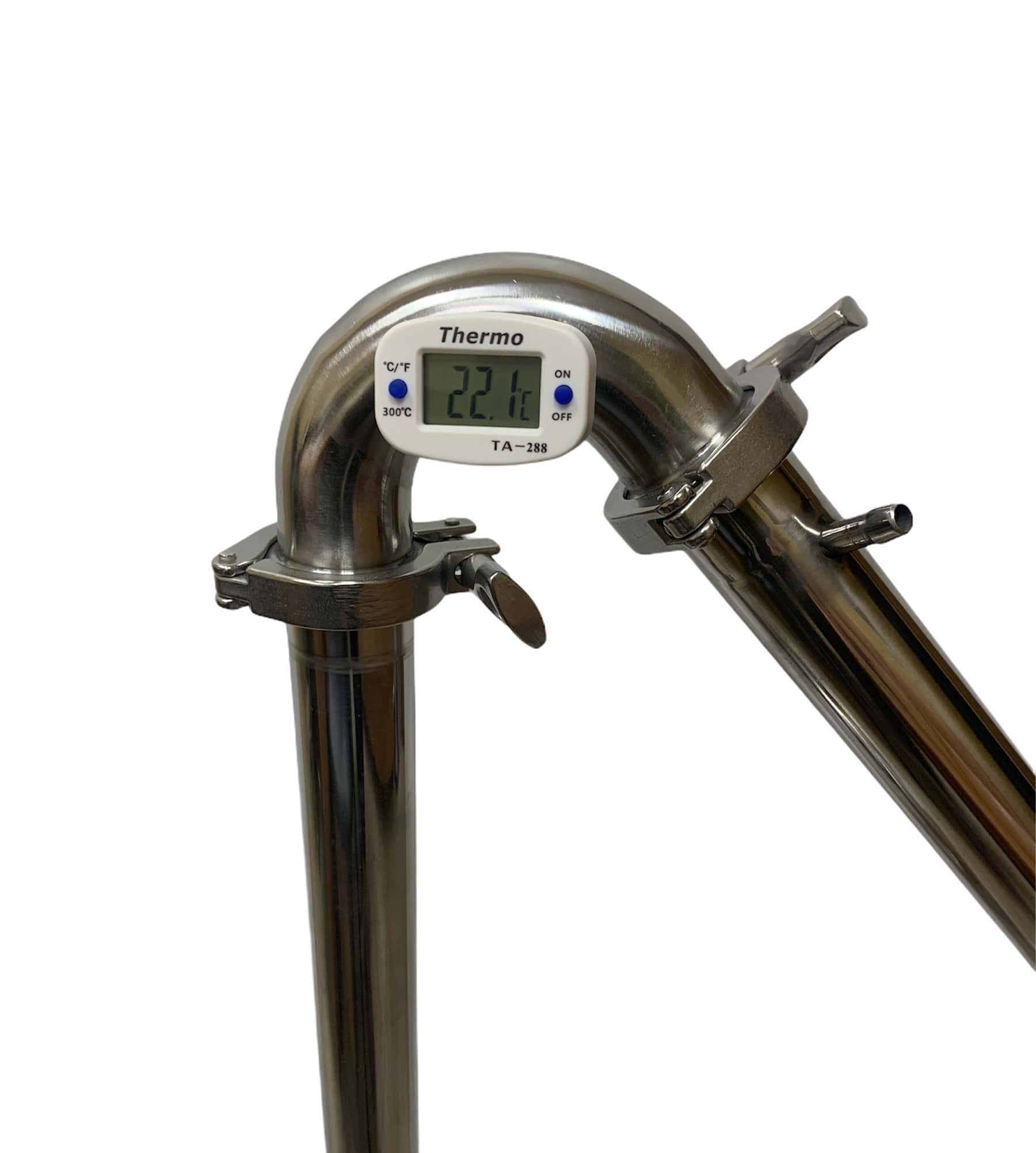 К аппарату можно дополнительно приобрести дефлегматор. Принцип работы дефлегматора в самогонном аппарате таков: пары, образующиеся во время готовки самогона возвращаются обратно в перегонный куб, что делает брагу еще более крепче, а на выходе полученный конденсат очищается от различных примесей, делая полученный напиток заметно крепче и чище.